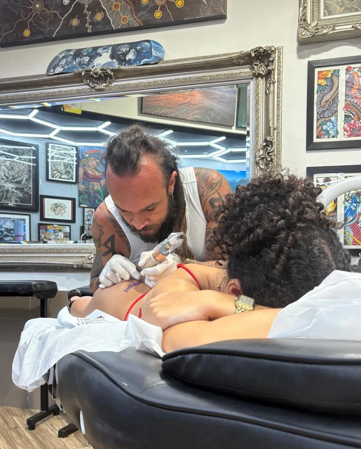 You will sit in a private room while you get your tattoo.